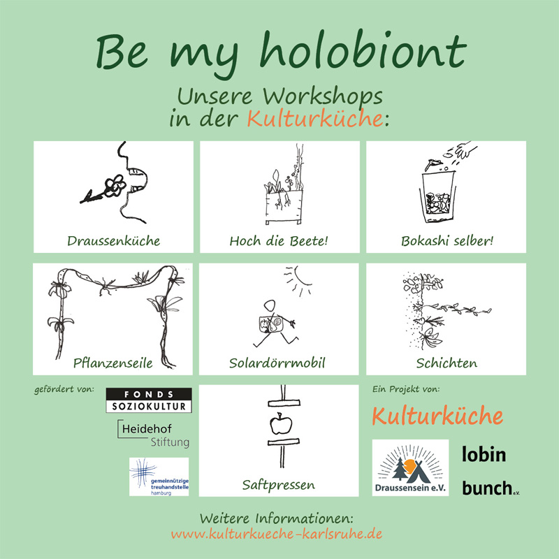 Be my holobiont Oktober 7, 2020 Mit unsererm Projekt „Be my holobiont“ gestalten wir Workshop für Workshop den Innenhof unserer schönen Kulturküche immer grüner: Permakultur triff aus Kunst!
